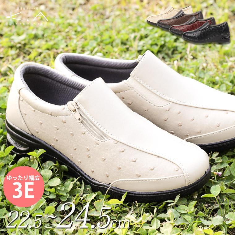 コンフォートシューズ 超軽量 モデル着用 注目アイテム レディース エアソール サイドファスナー エアークッション カジュアルシューズ 250 ミセス 婦人靴 軽い スニーカー レースアップ
