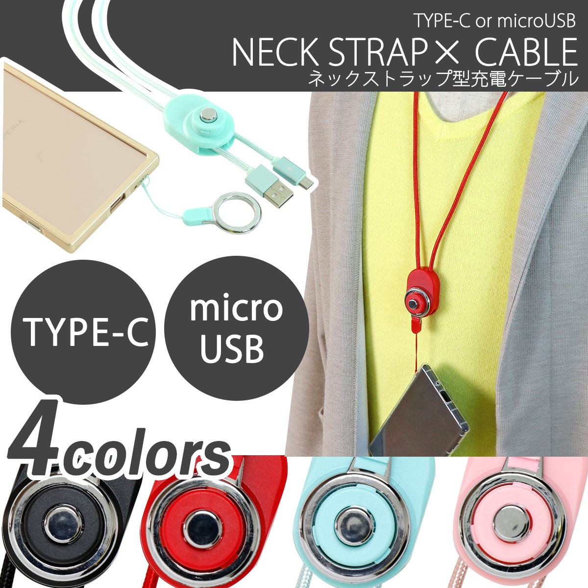 ネックストラップ型充電ケーブル タイプc Type C マイクロusb Microusb スマホストラップ 落下防止 充電 ケーブル 送料無料 スマホ セール ポイント消化 Charging Strap スマホケースチョモランマチップス 通販 Yahoo ショッピング
