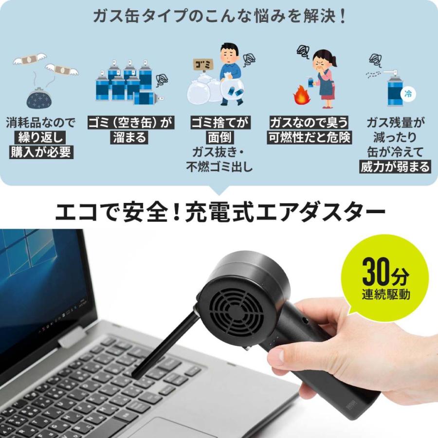 電動エアダスター 充電式 2段階風量調整 逆さ対応 強力 エコ ガス不使用 ノズル付き サンワダイレクト 通販 Paypayモール