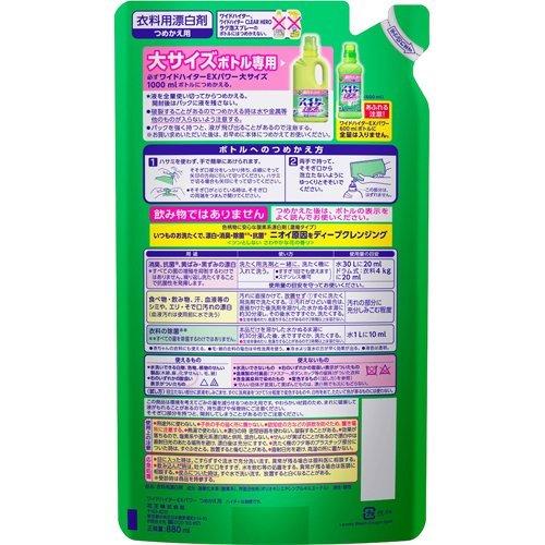 ワイドハイターexパワー 600ml 1000ml ワイドハイターexパワーガンコなシミ用 300ml のボトルにはつめかえない 破裂することがあるのでつめかえる時は水や金属等他のものが入らないよう注意する.