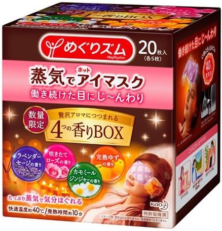 Amazon 限定 めぐりズム 蒸気でホットアイマスク 4つの香り Box 20枚入 花王 Kao 温熱ピロー