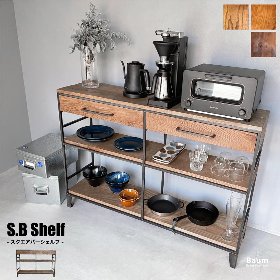 新生活 送料無料 キッチンシェルフ オーク 無垢材 アイアンシェルフ 3段 引き出し付 カップボード スライド棚 レンジ台 炊飯器置き おしゃれ 120cm キッチンラ 98 Baum Furniture 通販 Yahoo ショッピング