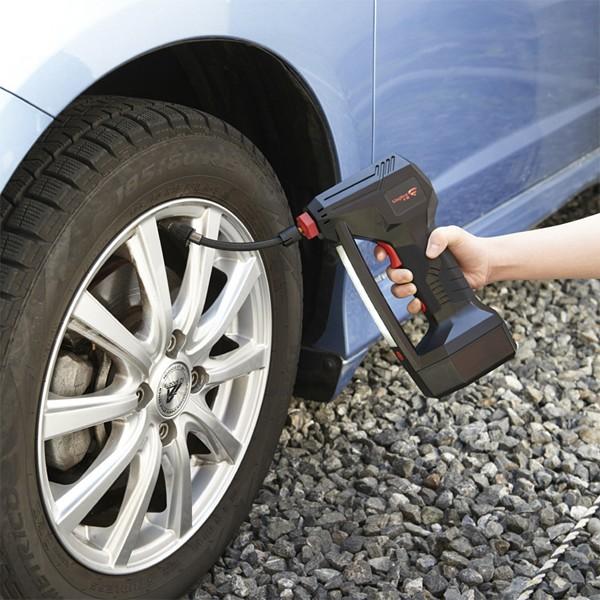 ハンディサイズなのにクルマのタイヤに空気を入れられるんです Gp