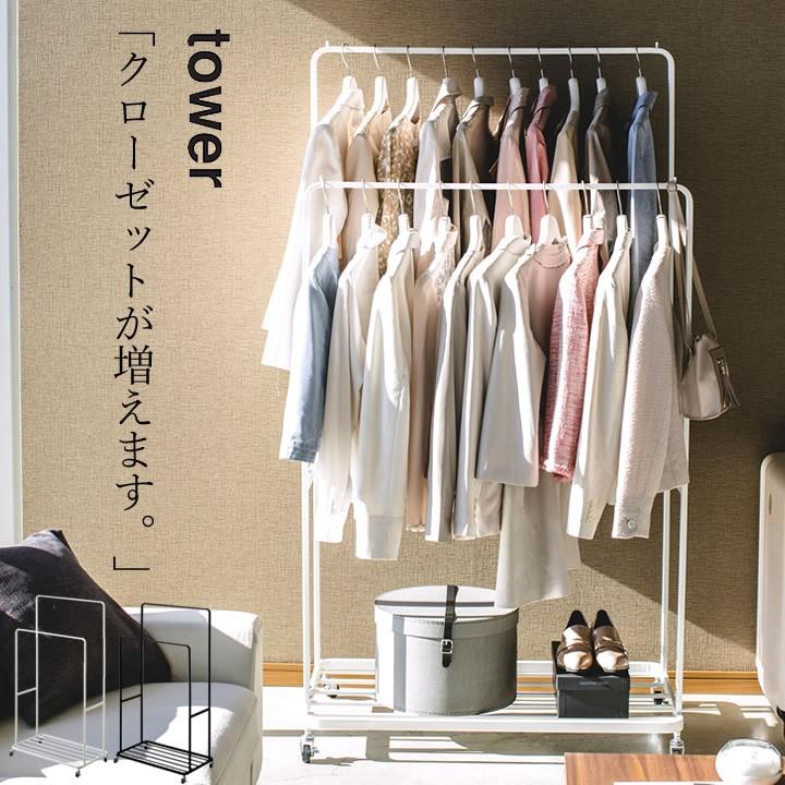 楽天市場 ハンガーラック タワー ダブル キャスター付き 山崎実業 Tower ハンガーラック キャスター付き ダブル 2段 コートハンガー おしゃれ 収納 洋服掛け コート掛け ラック オフィス 大容量 北欧 Yamazaki 4789 4790 ホワイト ブラック ポイント10倍 送料無料