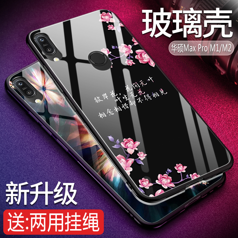 漸變玻璃殼asus Zenfone Max Pro M2 手機殼防摔華碩zb631kl 全包矽膠軟邊保護套 露天拍賣