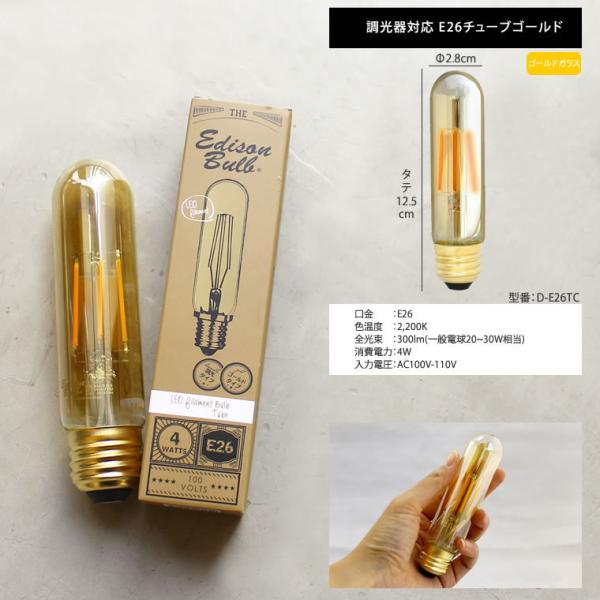 調光器対応エジソンバルブled チューブゴールドガラス Led 4w 100v Led 照明エジソン電球 チューブ型ゴールド筒形単品フィラメントled 日本代購網