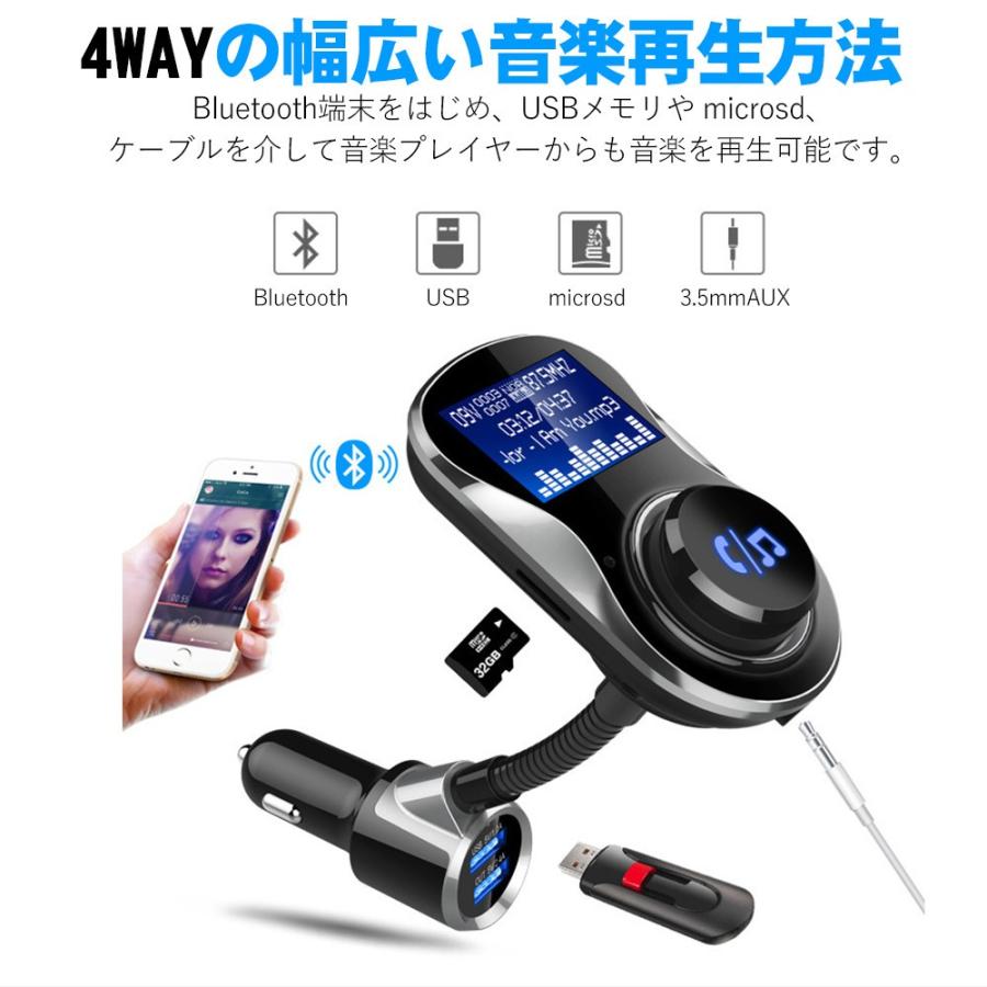 Amazon Co Jp Fmトランスミッター 技適認証済 Bluetooth 4 2 車載トランスミッター 高音質ハンズフリー通話 急速充電2usbポート カーチャージャー 4つeq音効 4種曲プレー Bluetooth Tfカード Aux U ディスク音楽再生対応 Cvc6 0ノイズ軽減 180 調整可 電圧測定