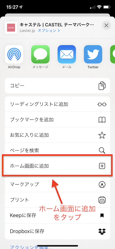 ホーム画面に追加をタップ Iphone サファリ キャステル Castel ディズニー情報
