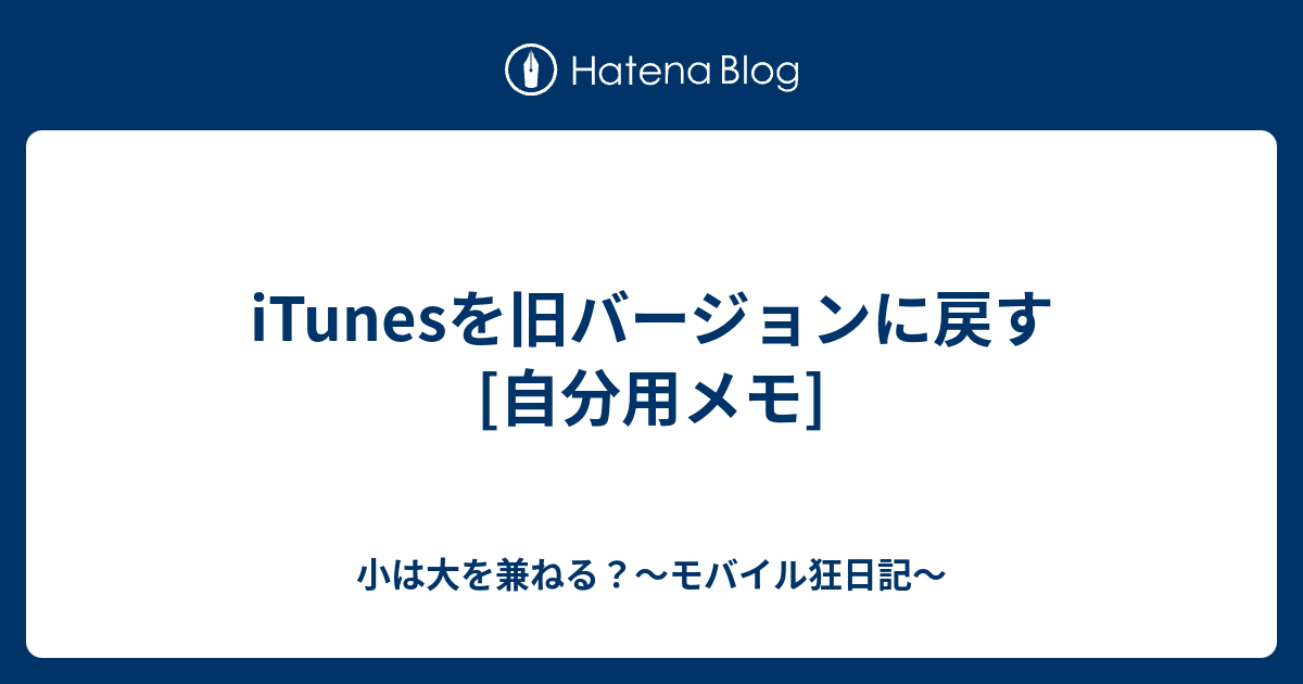 Itunesを旧バージョンに戻す 自分用メモ 小は大を兼ねる モバイル狂日記