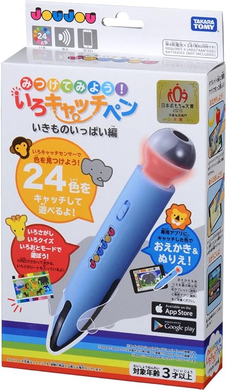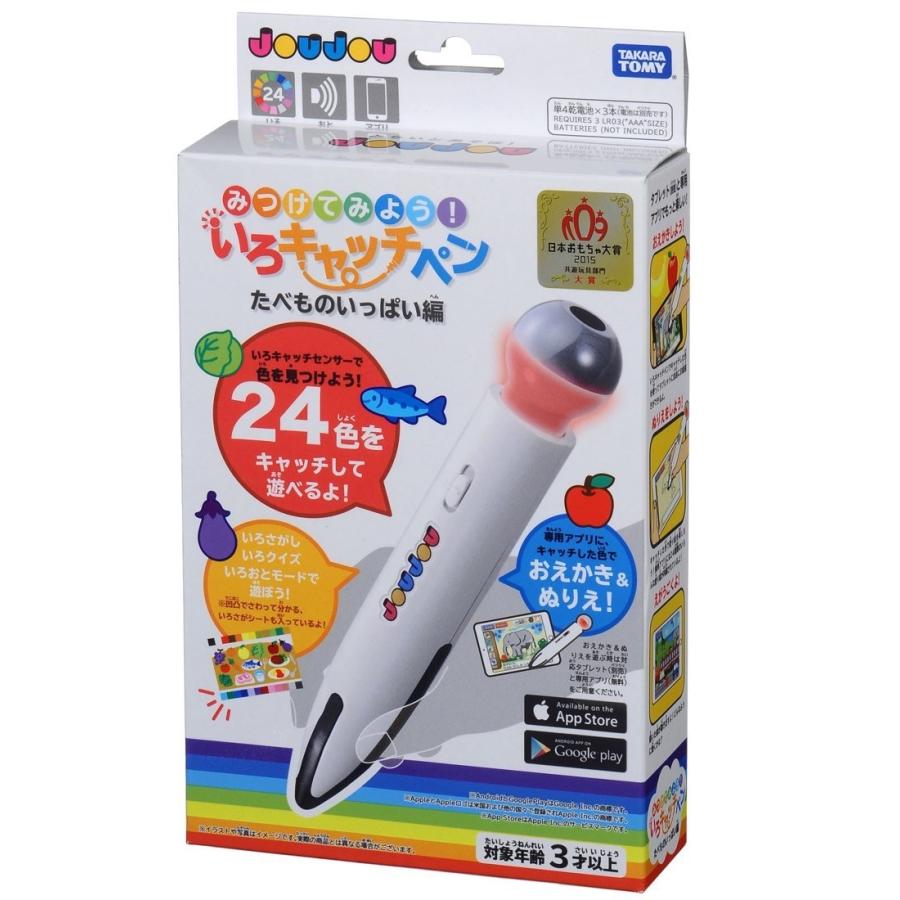 Joujou みつけてみよう いろキャッチペン. いろキャッチペン たべものいっぱい編 いろの世界を感じ とる ペンで身近な色をつかまえよう 24色を読み取れる色センサーと 音声を再生するスピーカー タブレットで使えるペン先を持った 次世代型のお絵かきおもちゃ joujou みつけてみよう.