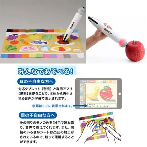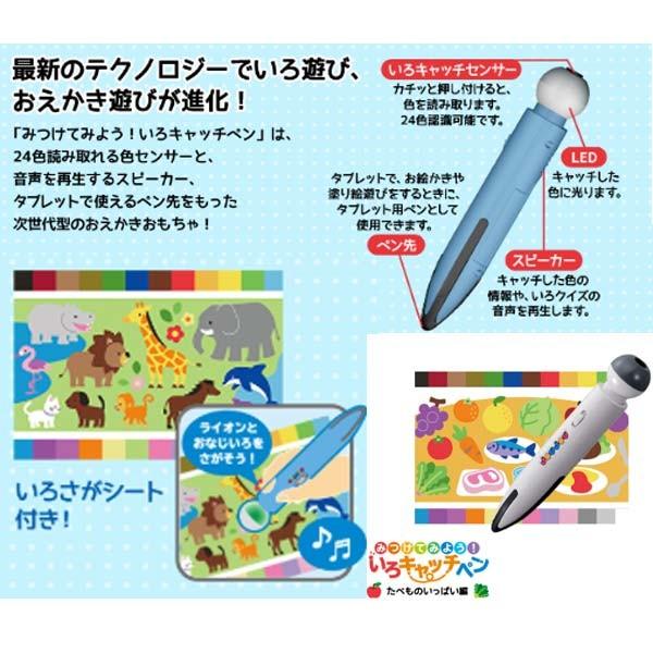24色読み取れる色センサーと 音声を再生するスピーカー そしてアプリと組み合わせてタブレットで使える次世代型のおえかきおもちゃ joujou みつけてみよう いろキャッチペン たべものいっぱい編.