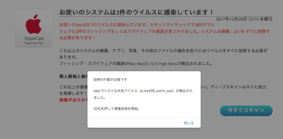 詐欺注意 お使いのmacでトロイの木馬ウイルスが検出されました Pc上手