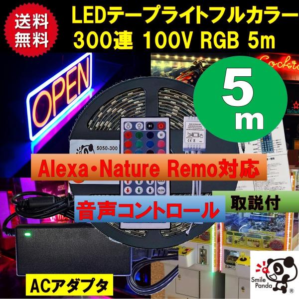 Ledテープライト 間接照明 100v Acアダプタ コンセント 防水 5m Alexa Nature Remo対応音声コントロール リモコン Rgb 5050 300連 高出力コントローラ 2ch 12a 100v 5050 300 5m Rgb W Ip65 Rtr2 Led専門店 スマイルパンダ 通販 Yahoo ショッピング