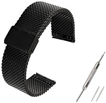 Amazon イーストベイ Eastbuy Pebble Time Round対応交換用腕時計 ベルトメッシュ リストバンド 幅が20mm高級ウオッチバンド 代替腕輪交換ベルト ストラップ Milanese Watch Band Black 並行輸入品 Ecsem ウェアアクセサリー