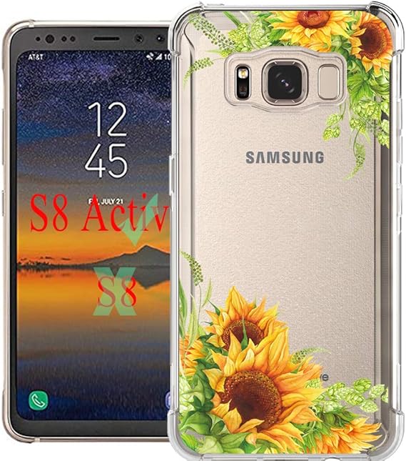 Amazon Com Luolnh Galaxy S8 Active Case Samsung Galaxy S8 Active Case With Flower Slim Shockproof Clear Floral Pattern Soft Flexible Tpu Back Cover For Samsung Galaxy S8 Active Sunflower Electronics