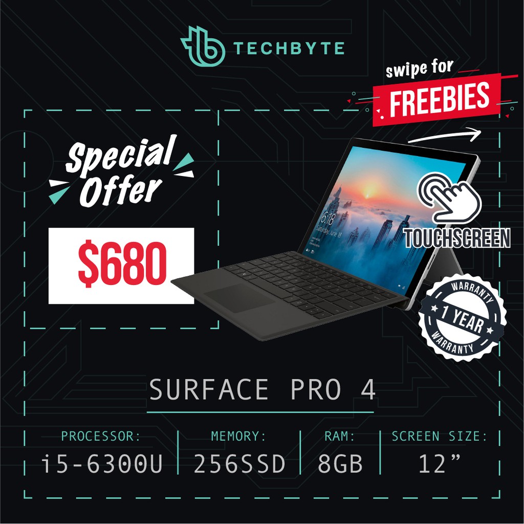 Microsoft Surface Pro 4 12 Core I5 6300u 8gb Ram 256gb Ssd Shopee Singapore