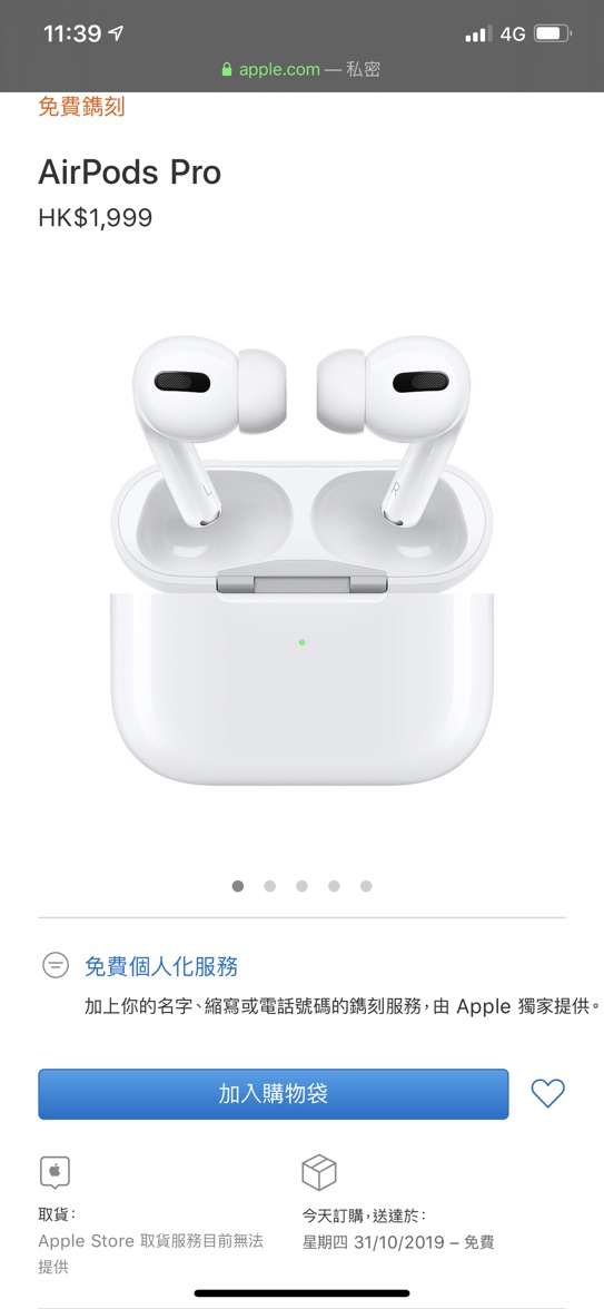 現貨香港代購airpods Pro 全新未拆有購買證明只剩一台 蝦皮購物