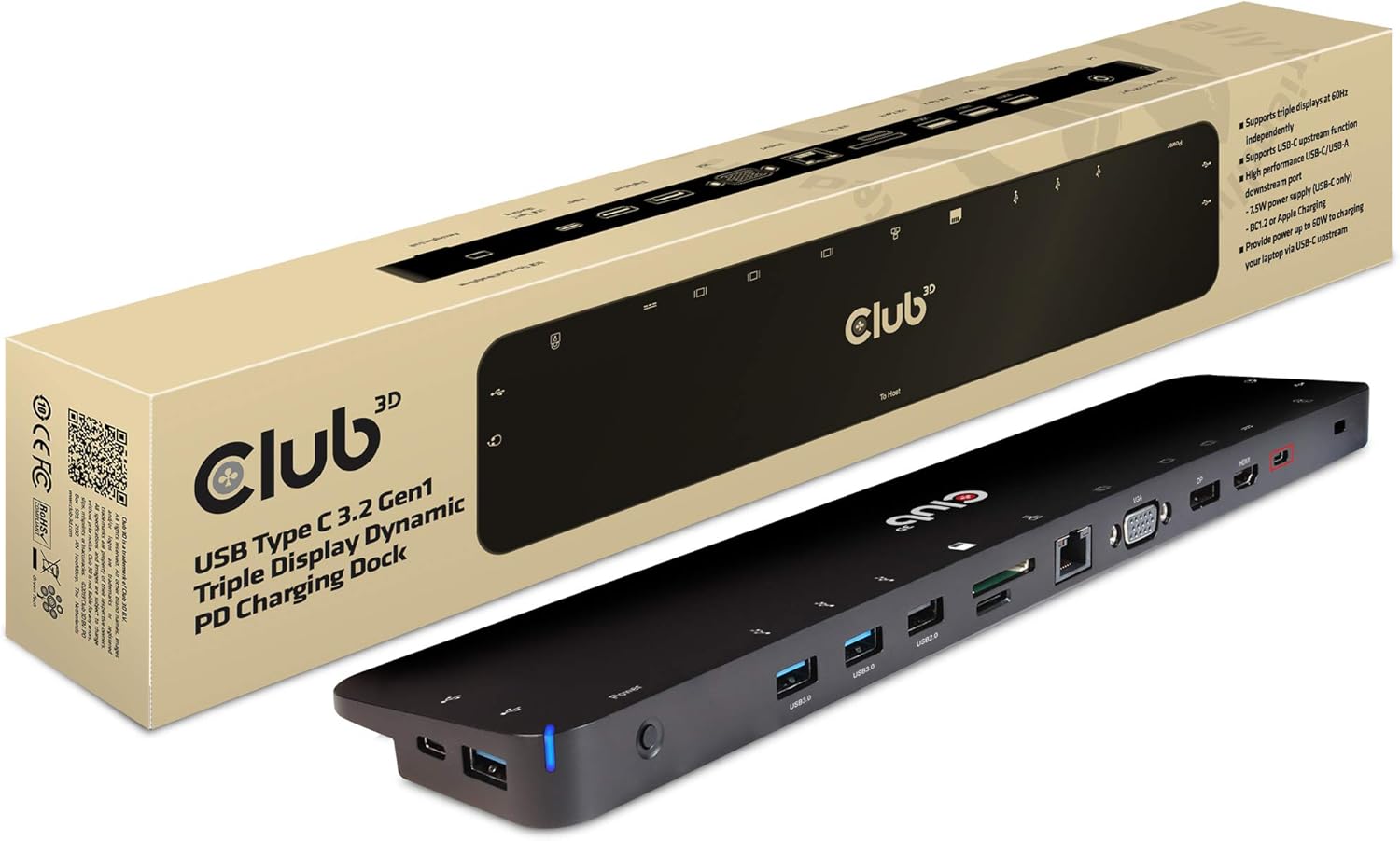 Amazon Co Jp Club3d Usb 3 2 Gen1 Type C Hdmi Displayport Vga トリプル ディスプレイ 100w ダイナミック チャージング ドッキングステーション Csv 1564 パソコン 周辺機器