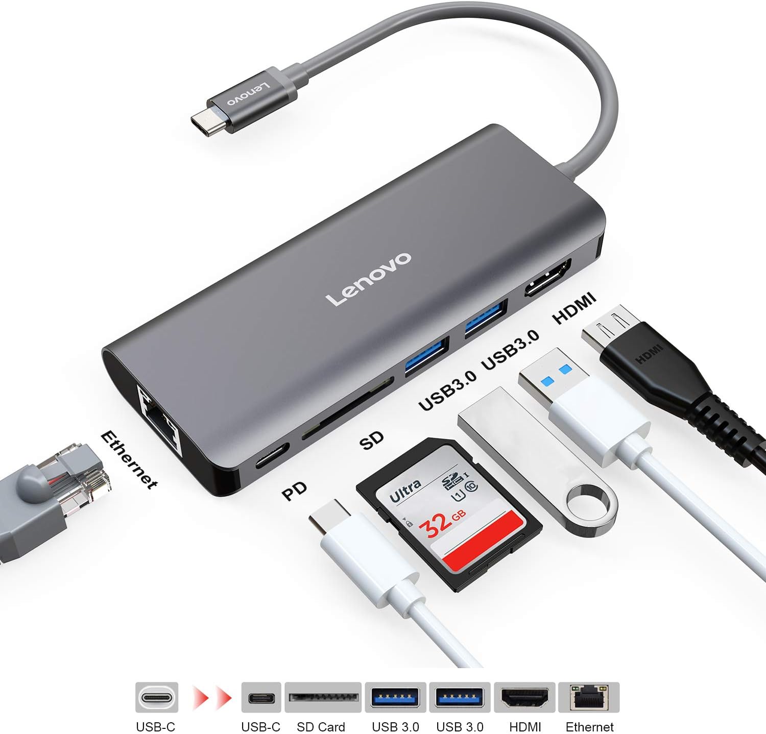 Amazon Lenovo Usb C ハブ Type C Hub Hdmi出力 高速usb 3 0 Usb2 0 Sd Microsd カードリーダー コンパクト Macbook Pro 2016 2017 Chromebookなどusb Cデバイス対応 シルバー Lenovo Usbハブ 通販