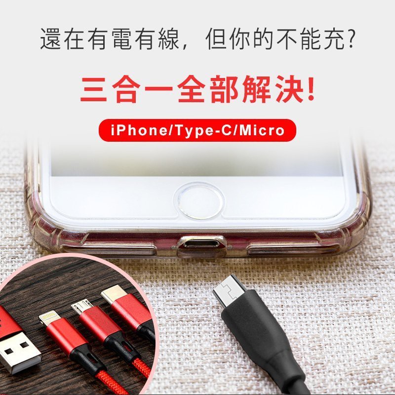 急速充電線cityboss Qc3 0 6a急速充電線micro Usb Type C Iphone 三合一鋁合金編織 蝦皮購物